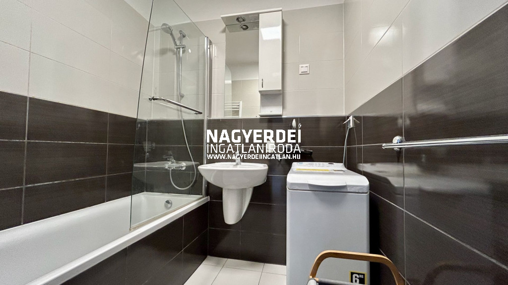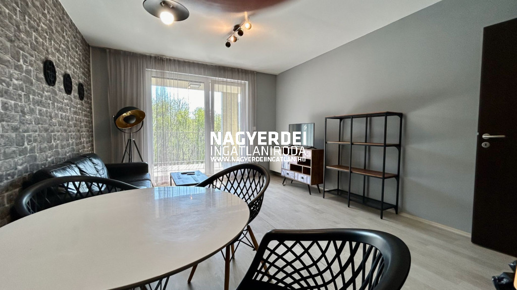 Debrecen-Egyetemváros, Dóczy Parkban, az egyetem mellett lévő társasházban, villamosvonal mellett, 2 lifttel is felszerelt, térkamerázott, központi klímával hűtött, központi kondenzációs kazánokkal fűtött, 7 emeletes társasházban, nappali + 1 hálószobás, teraszos lakás hosszú távra kiadó. Zárt kocsibeálló bérelhető opcionálisan. Az ingatlan teljesen bútorozva, gépesítve vehető igénybe, június első hetétől költözhető, két havi kaució szükséges. Referenciaszám: #125562