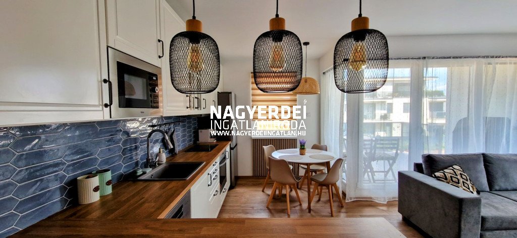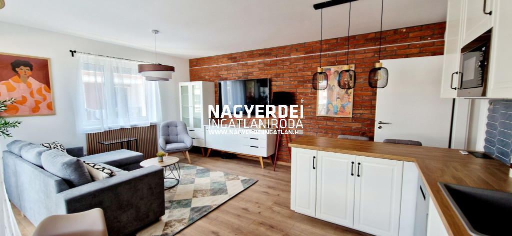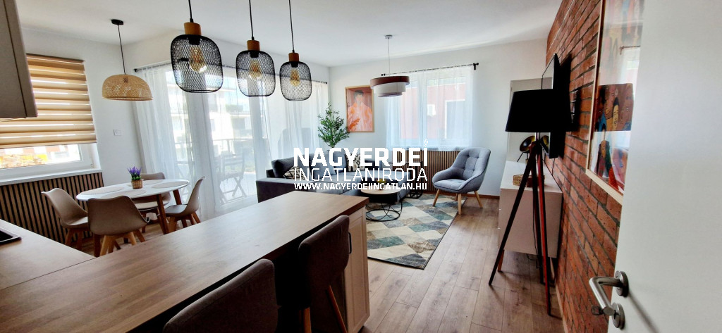 Furnished and fully equipped 67 m2 apartment with elevator and air conditioning in the Debrecen-Nyulas district, with a 9 m2 terrace. The apartment has an underground garage equipped with an electric car charger (included in the price).