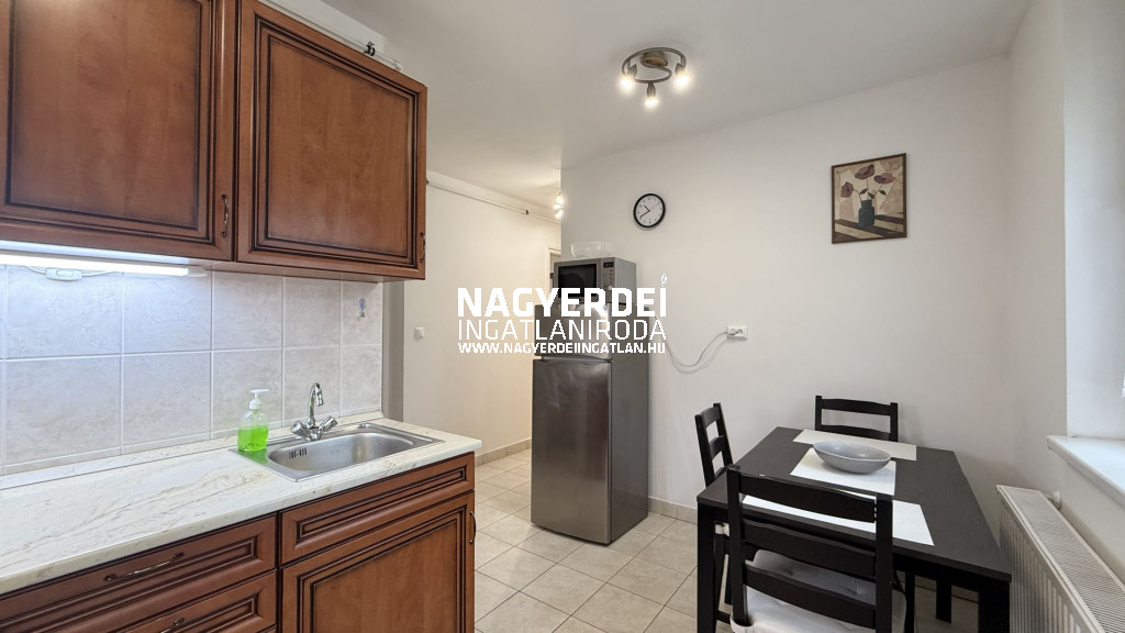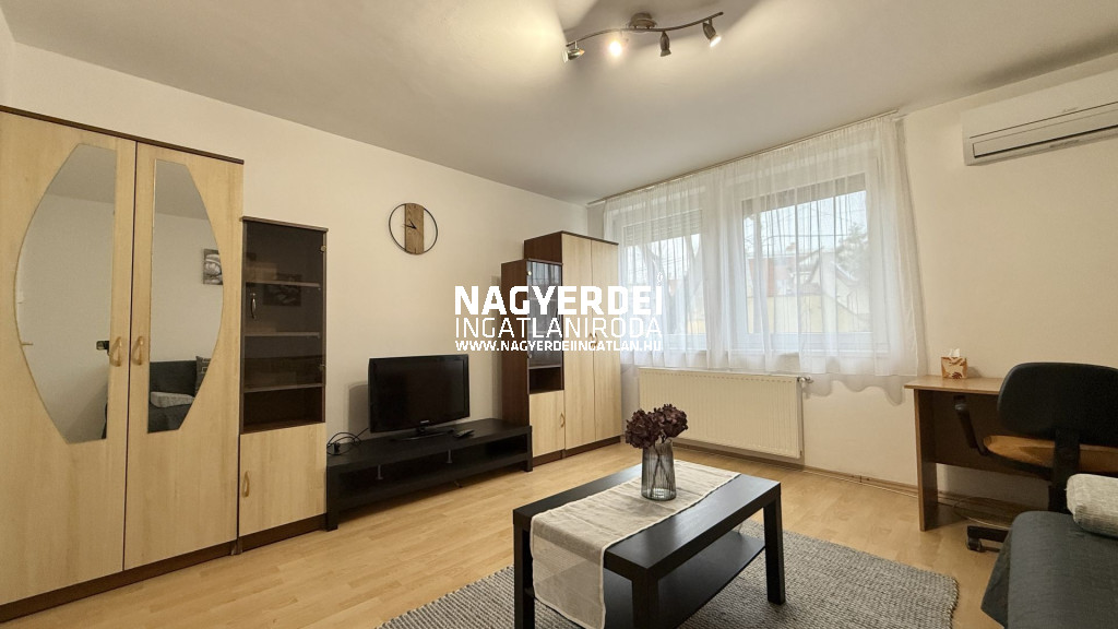 Debrecenben az Árpád tér mellett, a Műszaki kar és a Kassai Campus közelében, kiadó egy földszinti nappali + 1 hálószobás igényes lakás. Az ingatlan bútorozott és gépesített, légkondicionált, tartozik hozzá egy kocsibeálló. Igény szerint zárt 21 nm-es garázs is bérelhető hozzá. Azonnal költözhető, 2 havi kaució szükséges. Referenciaszám: #124570