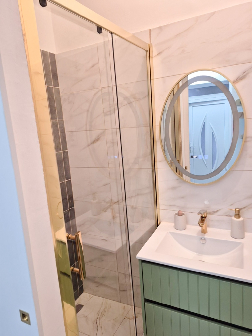 zuhanyzós fürdőszoba, igényes burkolatok