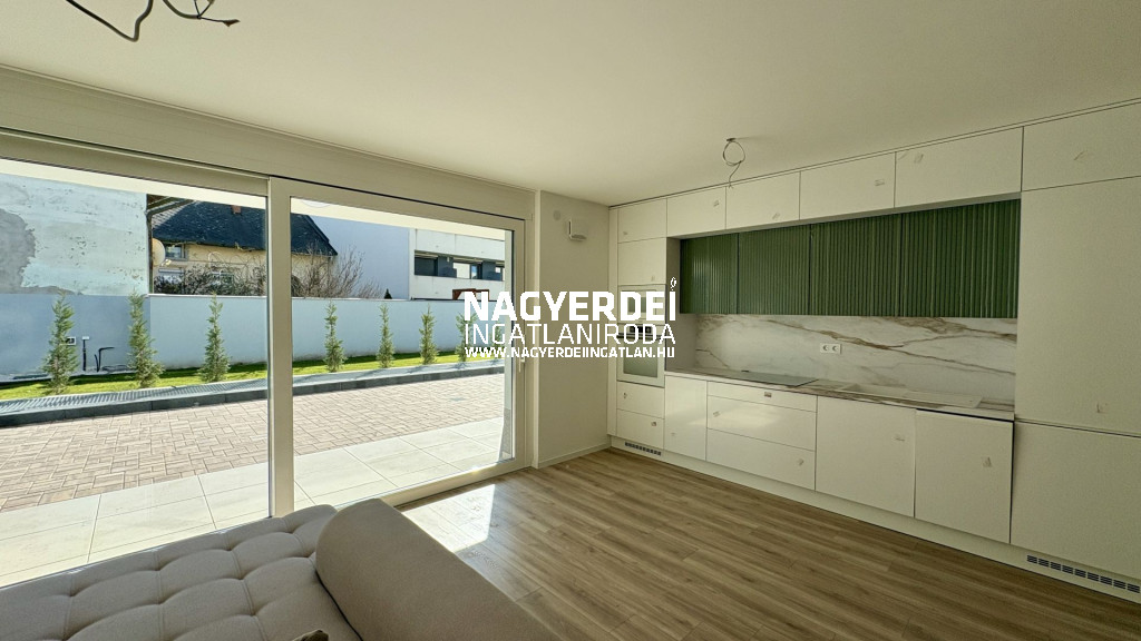 KIADÓ Debrecenben a belvároshoz közel egy ÚJ ÉPÍTÉSŰ 75 m²-es tégla ingatlan, két hálószoba + nappali elrendezéssel, hatalmas terasszal és kertkapcsolattal, BÚTOROZATLANUL. A lakásban mennyezetfűtés, -hűtés található. Három rétegű műanyag ablakokkal felszerelt, valamint hőszigetelt alumínium redőnyökkel, amelyek távirányítóval állíthatók.