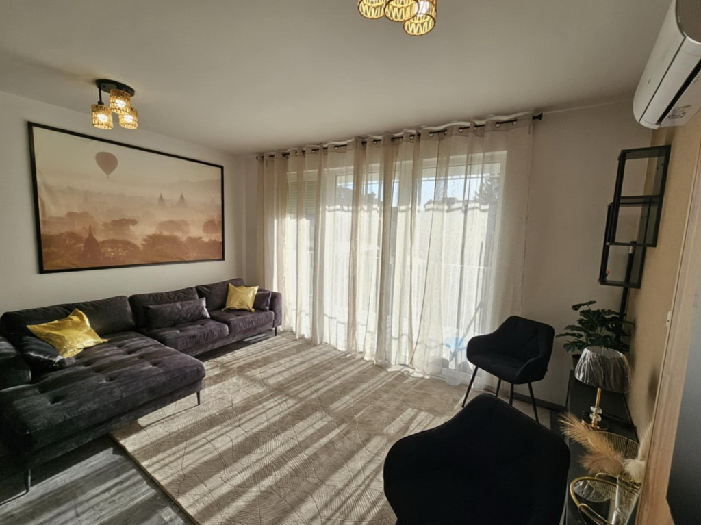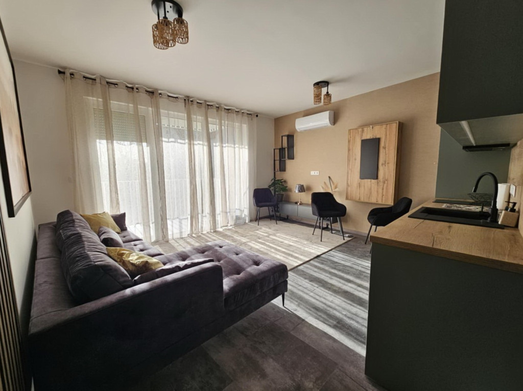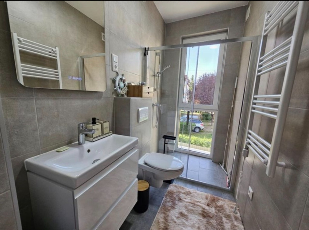 Debrecenben a Hatvan utcai kertben a Kishegyesi úton, új építésű, szigetelt, liftes társasházban, kiadó egy 1. emeleti (liftes) 46 nm-es, nappali + 1 szobás, igényesen berendezett, bútorozott és gépesített, klimatizált, nagy teraszos lakás. A kellemes hőmérsékletről padlófűtés és klíma gondoskodik.