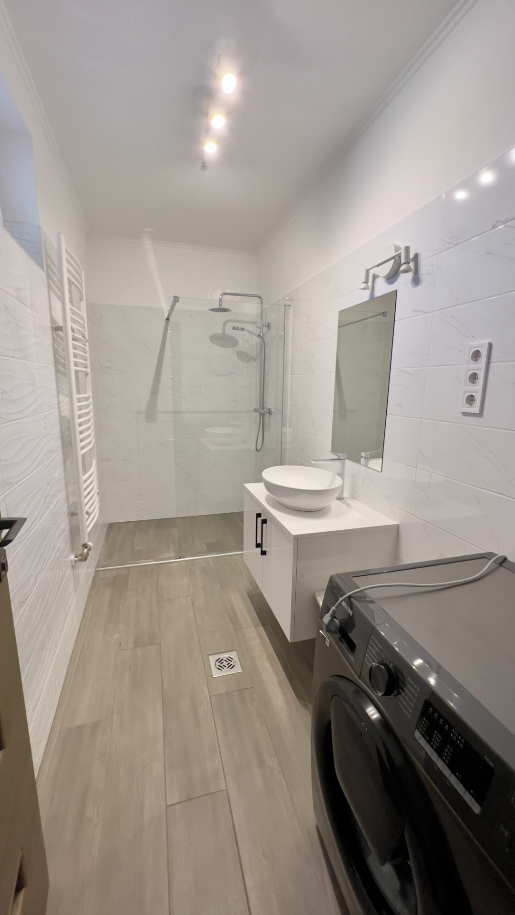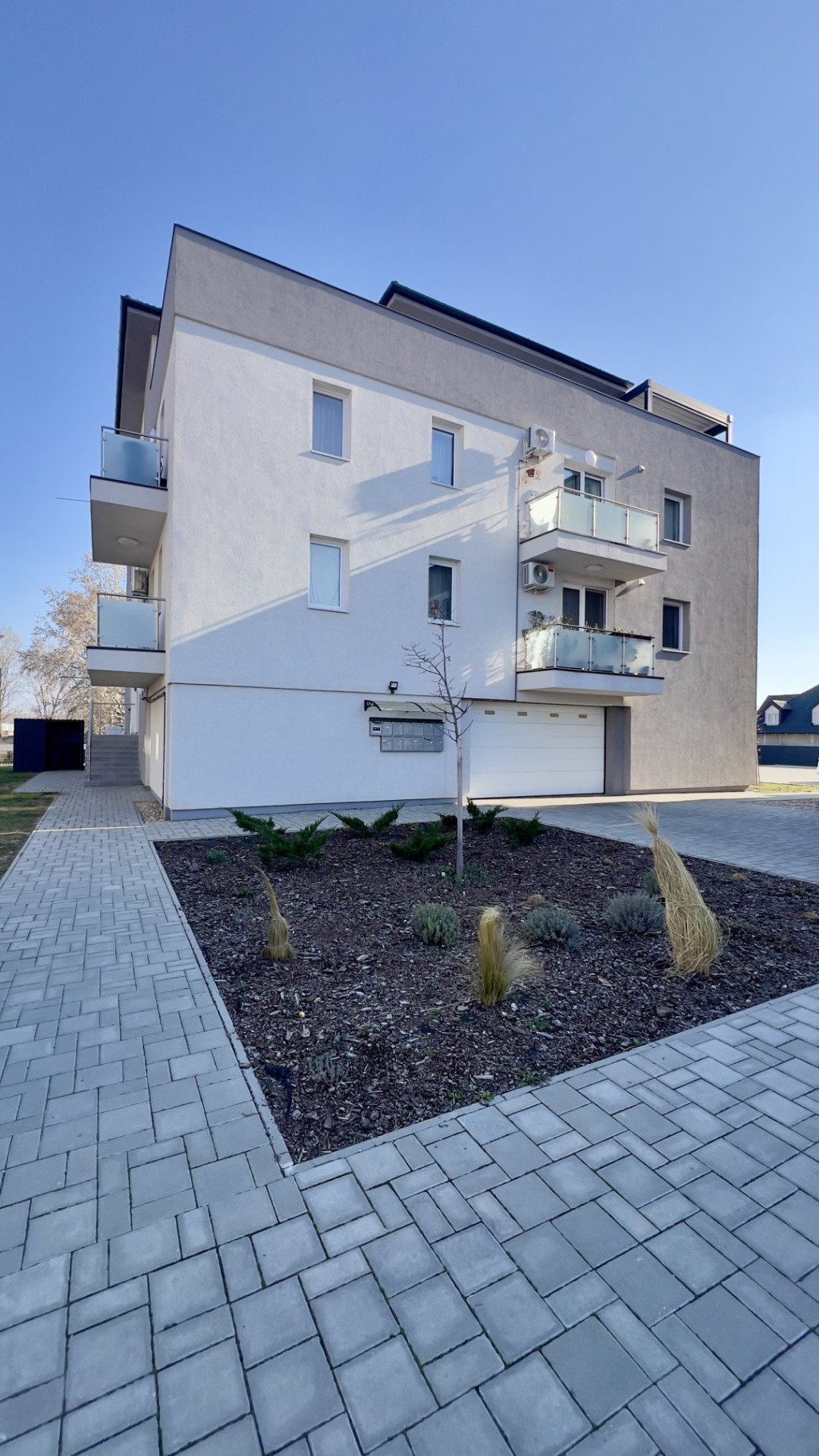 A lakáshoz tartozik egy teremgarázs hely és egy kültéri parkoló.