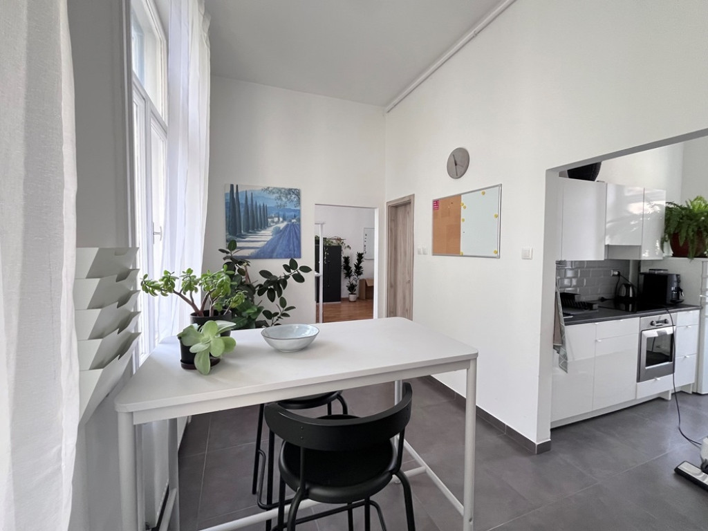 Győr-Belvárosának rendkívül kedvelt részén, Baross úttól 1 perces sétatávolságra, rendezett, tiszta társasház 2. emeletén, jelentős felújításokon (részben nyílászárócsere, víz-, villanyvezetékcsere, új konyhabútor, burkolatcsere, festés, gépészeti anyagok, szaniterek cseréje, fűtéskorszerűsítés, stb.,) átesett, konyha + étkező + nappali/iroda + 1 hálószobás/iroda, kiváló állapotú, 59 m2-es, KLIMATIZÁLT, bútorozatlan téglalakás, - irodai célra kiválóan alkalmas - saját 3 m2-es tárolóval kiadó.Bérleti díj: 220.000 Ft./hó + rezsi + 2 havi kaució