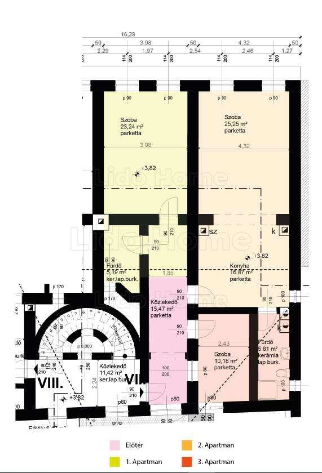 -3 szoba apartman : fürdő, konyha, wc