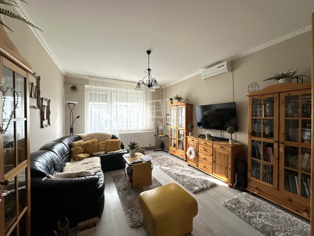 A 4 lakásos lépcsőházban elhelyezkedő első emeleti lakás 64 m2-es, mind műszakilag, mind esztétikailag teljes körűen felújított, hatalmas műanyag nyílászáróinak köszönhetően pedig nagyon világos is.