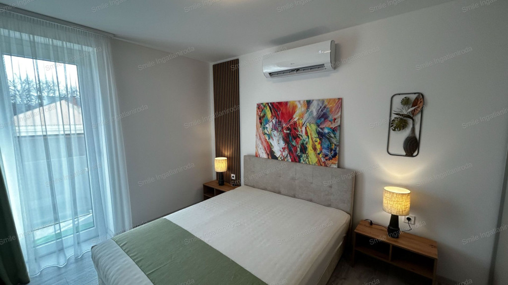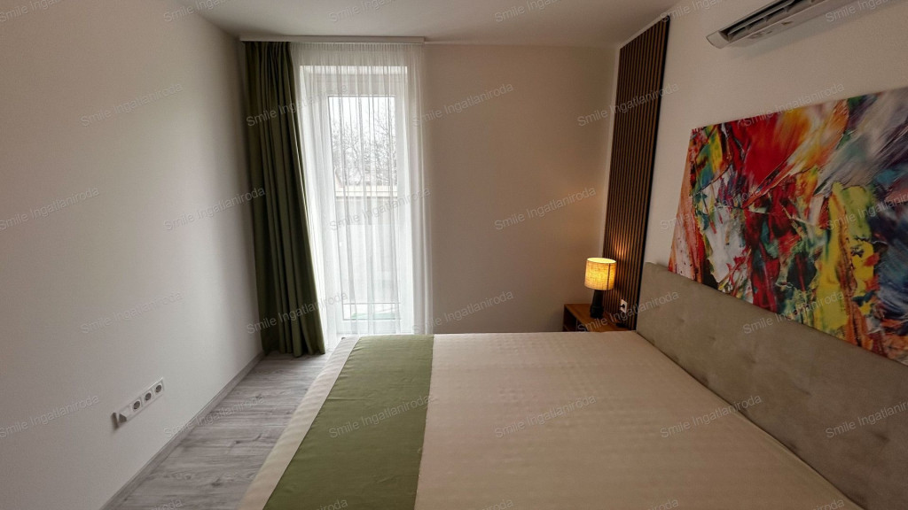 Nyíregyháza abszolút belvárosának közelében , 2025 évben használatba vett új építésű társasház 1. emeletén , Amerikai-konyhás nappalis + hálószobás D-i tájolású cca. : 58 m2-es minimál stílusban berendezett modern lakás 16 m2-es loggiaval, önmagára és környezetére igényes bérlő maximum 2 fő részére hosszabb távra kiadó. A nappali és a konyha egy légtérben található a hálószoba különálló , a fürdőszoba és a WC is külön lett kialakítva. A lakás fűtéséről kondenzáció gázkazán padlófűtéses hőleadással,hűtéséről klíma gondoskodik. A parkolás a társasház zárt udvarán található saját parkolóban külön megállapodás alapján.Lakás havi bérleti díja : 200.000,- Ft + rezsi + 2 havi Kaució