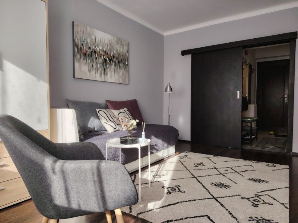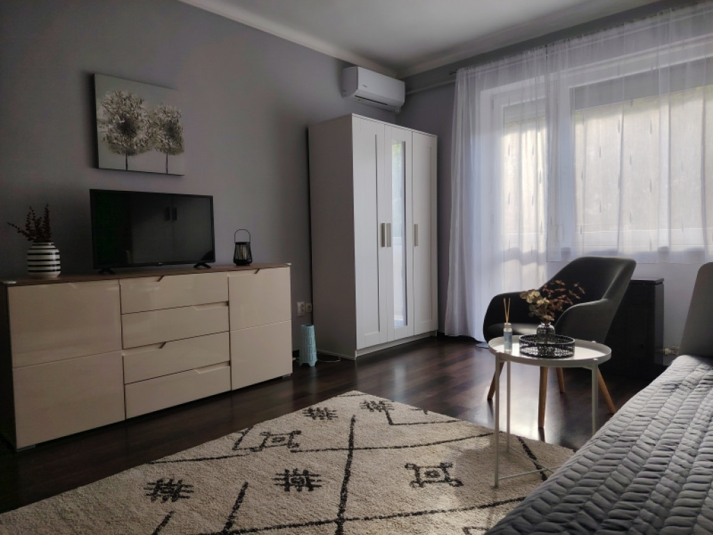 A lakás bútorozott, teljesen felszerelt és gépesített ( mosógép, hűtő stb...)