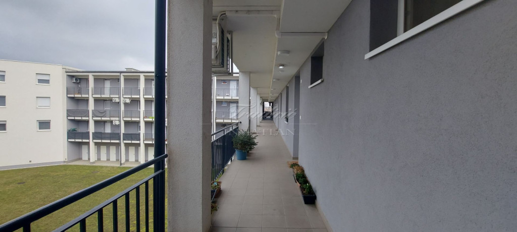 A lakás a tágas lépcsőházon keresztül- és lifttel egyaránt megközelíthető. A lakótér egy biztonságos, belső advarra néző külső folyosóról nyílik, ami akár teraszként is használható.
