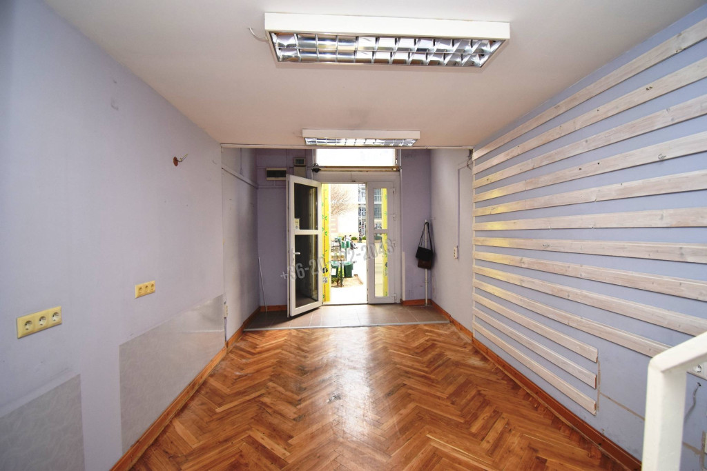 Saját WC és mosdó kialakításra került. Kiválóan alkalmas lehet szépségszalon, vagy iroda kialakítására is. Műanyag bejárati ajtót építettek be. A fogadó helyiség, tk. az üzlettér faparkettával burkolt. Ennek a helyiségnek az alapterülete 3.2 x 5.5 méter, azaz 17,6 nm.