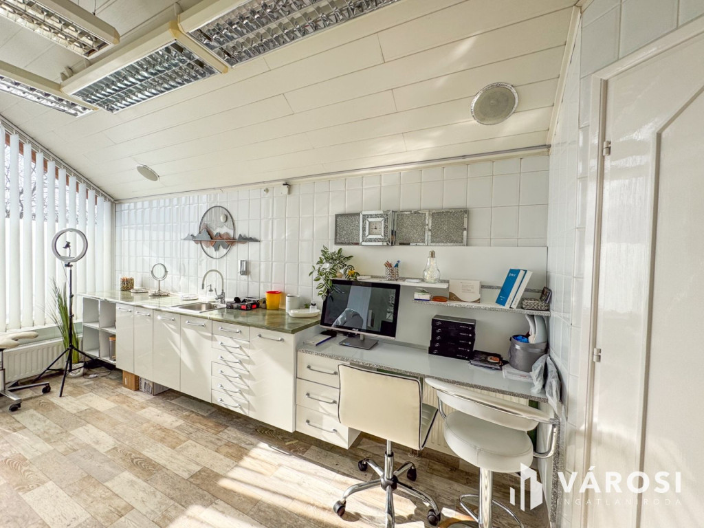 A praktikus beépített szekrények segítenek a tárolásban, míg a klíma biztosítja a kényelmes munkavégzést a legforróbb nyári napokon is. Az ingatlan a csendes utcának köszönhetően zavartalan környezetet biztosít, ugyanakkor a kiváló közlekedés lehetővé teszi a gyors hozzáférést a város bármely pontjára, és a belváros közelsége miatt minden fontosabb szolgáltatás és intézmény könnyedén elérhető. Az ingatlan a Pándy Kálmán Kórház közvetlen közelében található, így a megközelítése nagyon kényelmes és számos parkolási lehetőség van a közelben.