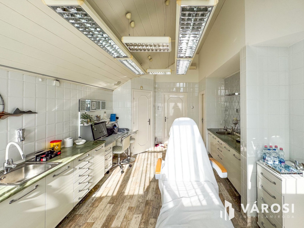 Az ingatlan nagyon szép állapotú, részben felújított, berendezett, így azonnal használatba vehető. Ideális választás lehet szolgáltató egységek (orvosi rendelő, fodrász, kozmetikus stb.) számára. Korábban fogorvosi rendelőként és orvos esztétikai rendelőként is működött. A rendelőhöz egy közös használatú teakonyha és mosdó, valamint egy tágas váró is tartozik.