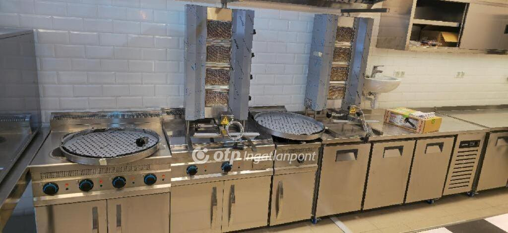 Az összes berendezés, grill sütő, gyros sűtő, az összes pult, és hűtő, a páraelszívó mind vadonat új. A kiszolgáló, melegentartó pult is mind rozsda mentes korszerű valamint a butorzat soha nem volt még használva.